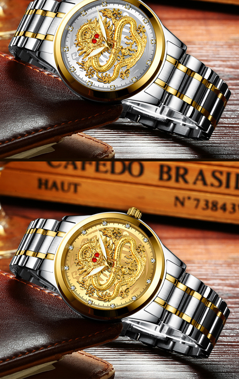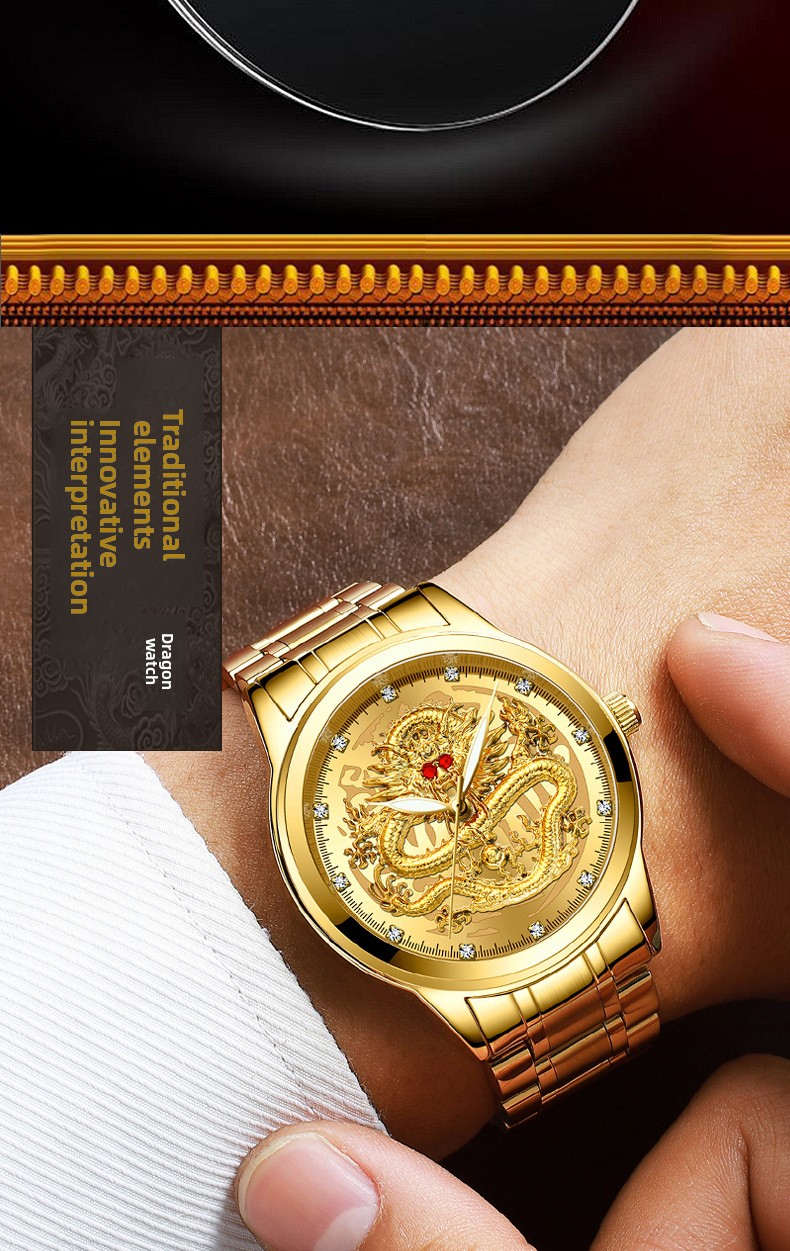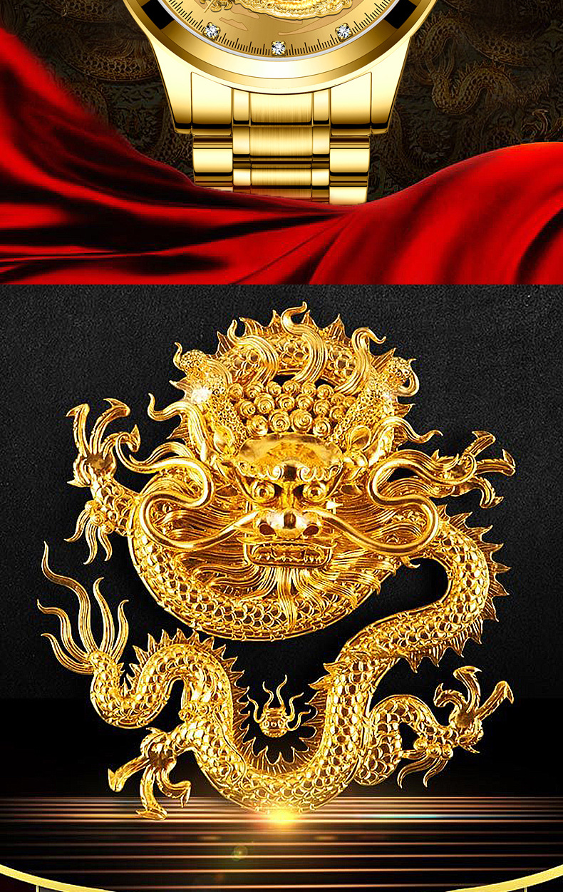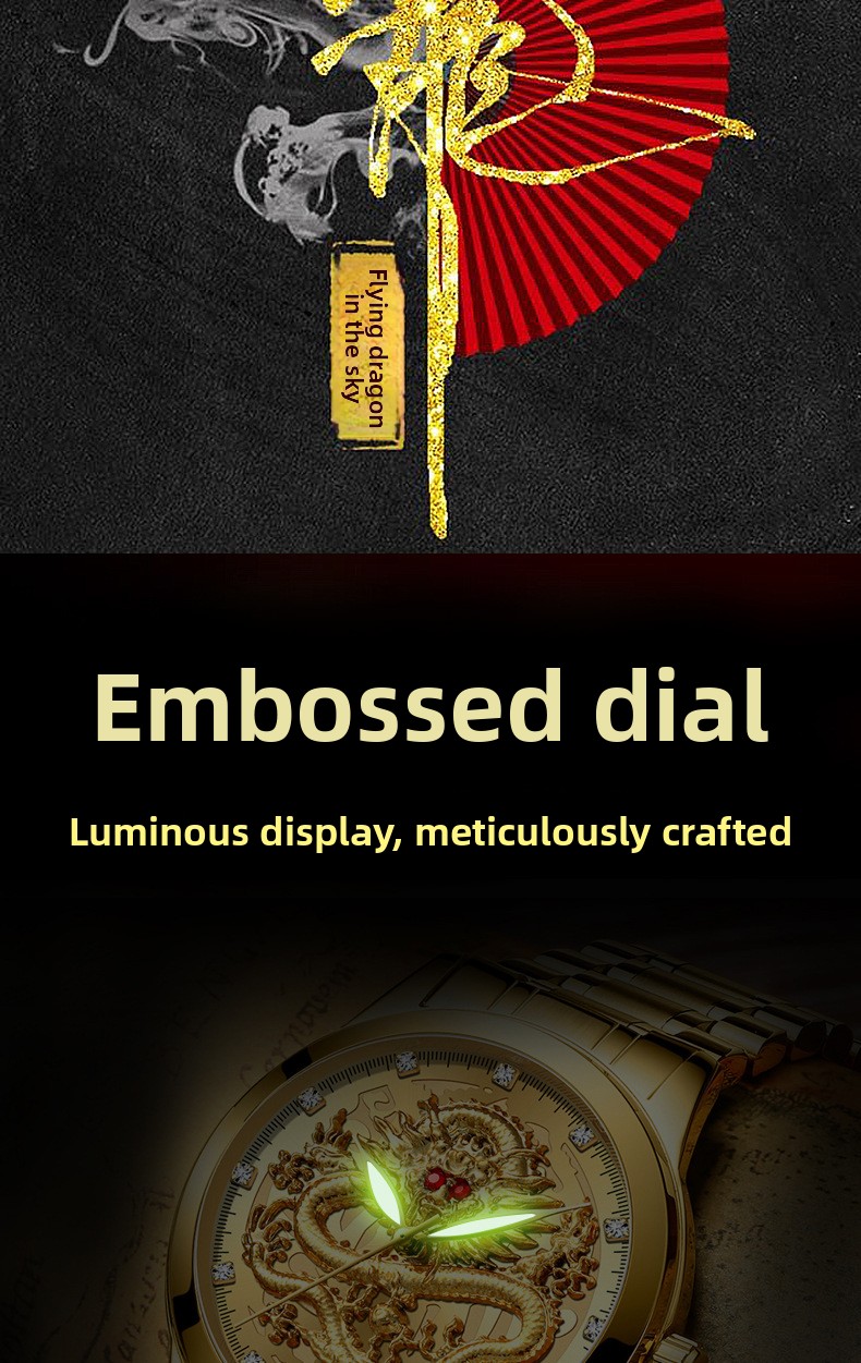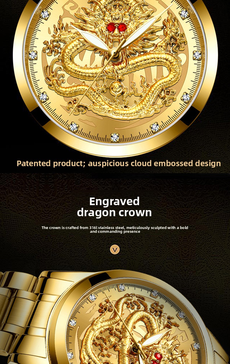 Luxury Design: Embossed dragon motif with diamond and ruby accents